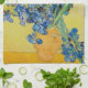 Irises (1890) Vincent van Gogh. Lovely positive still life. Large yellow vase with a bouquet of blue irises on a yellow background. Reproduction of famous works of art images in the public domain.
