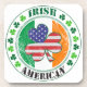 Stars and Stripes in shamrock style with “Irish American.” Unique combination of American and Irish flags to show patriotism and pride of two cultures.