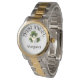 This custom wrist watch features the text "Irish Angel", three shamrocks and a text template for your name.