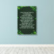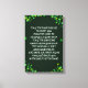 This beautiful Irish Blessing greeting Canvas Print features the timeless Gaelic prayer, "May the Road Rise Up to Meet You." The design showcases vibrant green shamrocks on a dark green background, symbolising good luck and Irish tradition. It is perfect for St. Patrick's Day, weddings, farewells, or any occasion to send warm wishes of love and good fortune.