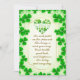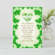 Visual Elements: The card features numerous green shamrocks, including a heart shape made of shamrocks near the top center. The overall color scheme is green and gold.