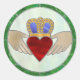 Claddagh. The hands denotes friendship and togetherness, the heart signifies love and the crown stands for loyalty. This design has been rendered as though made from stained glass.