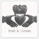 Irish Claddagh love symbol of friendship, loyalty and love in pewter / silver colour with bride and groom's name in script font..  Easily customise with bride and groom's name.  Perfect for your Irish Wedding decor.