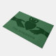 This doormat has a simple hand drawn style illustration of an Irish claddagh heart traditionally found on claddagh rings. The graphic is in a dark hunter or forest green set against a lighter green background