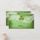 Irish clover and veil green Saint Patrick’s Day wedding place card featuring a green shamrock leaf with gold outline on a white waved veil on green grunge stained background. This modern wedding invitation design is part of a wedding set or wedding collection and is a fully customisable template perfect for an Irish St. Patrick’s Day wedding.