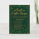 This premium folding holiday greeting card features an ornate gold and shamrock cover, showcasing an Irish coffee recipe. The interior includes an Irish greeting and an image of Irish coffee. Perfect for St. Patrick's Day enthusiasts, this card can be purchased as is or personalized.