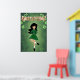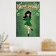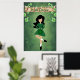 This Irish Dance poster features an Irish Dancer with black hair with a green shamrock background.