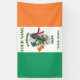 Show your Irish heritage with this 5ft x 3ft Irish flag banner. Add your family name or other text such as a bar or club and your own location or other text. The center of the flag has an original design with an American Eagle, with Irish shamrocks and the Flags of Ireland and your State. There are 3 options - Indoor, Outdoor and Outdoor with metal grommets. (Delete current text to leave blank with just center crest showing)