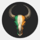 Irish Flag Bull Skull on Black Classic Round Sticker