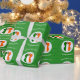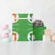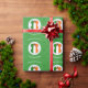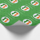 Irish flag Christmas angel personalised wrapping paper. Design features an angel, dressed in the flag of Ireland, inside a white circle of squiggly squares. Background is green squiggly squares. Personalised with name, year, and holiday, or whatever you wish. Wrap your holiday gifts and share your pride at the same time.