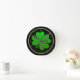 Wall Clock: Patriotic Ireland monogrammed & Irish Flag colours rings surrounding "Lucky Clover Leaf" symbol of Ireland and Saint Patricks Day - love my country, lucky charm, good luck for weddigs, national patriots / sports fans