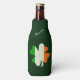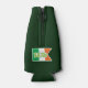 This drink cooler is perfect for anyone proud to be Irish! It features a shamrock shape filled with the stripes in green, white, and orange of the flag of Ireland. Your custom text appears in white above. The back has an Irish striped pennant.