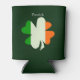 The traditional shamrock shape filled with the stripes in green, white, and orange of the flag of Ireland. Your custom text appears in white above. The back has an Irish striped pennant. Show your Irish side proudly!