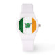 Green, orange and white tricolor of the Irish flag of Ireland with a clover in the middle.