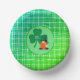 Irish Gnome Shamrock St Patrick's Paper Bowls. Funny Irish gnome standing by a giant green plaid shamrock. Personalise this template with text.