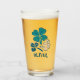 Irish Green Shamrock Clover Personalised Beer Glass. Hand-drawn four leaves shamrocks for luck. Add your name.