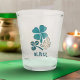 Irish Green Shamrock Clover Personalised Shot Glass. Hand-drawn four leaves shamrocks for luck. Add your name.