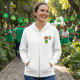 Layer up in style with this whimsical womens full zip hoodie showcasing a lucky Irish cow. This hooded sweatshirt features a playful bovine character standing on the earth, making it a standout piece for Earth Day or St. Patricks Day celebrations. The convenient front zipper and pockets offer practicality while the soft interior keeps you warm during cool weather. Whether you are heading to a festival or relaxing at home, this colorful graphic hoodie brings a touch of humor and personality to your seasonal wardrobe.