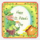 Fun Leprechaun and his pot of gold spilling gold coins on the ground. Shamrocks are scattered all around and multi coloured gradient makes this colourful and festive. Text is customisable by you.