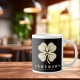 Irish Lucky Four Leaf Clover with Name Black Large Coffee Mug