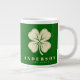 Irish Lucky Four Leaf Clover with Name Green Large Coffee Mug