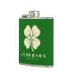 Irish Lucky Four Leaf Clover with Name Green Vinyl Hip Flask