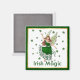Pretty Redhead Irish Fairy with text saying Irish Magic. She is tossing Lucky Shamrocks in the air.