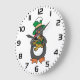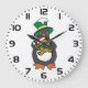 Irish Penguin Holding Christmas Teddy Bear Large Clock