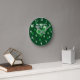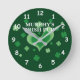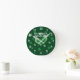 Irish pub wall clock with custom name and clovers. Round clock with green heart and lucky shamrocks. Add your own bar name.