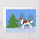 Irish Red and White Setter Decorating Tree Postcard