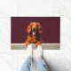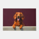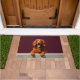 The deep wine red background enhances the richness of its coat, creating a bold and sophisticated look perfect for welcoming entryways. Designed with extra space at the top and bottom, it allows easy personalization with names, welcome messages, or custom text—making it ideal for unique dog-themed doormats and thoughtful gifts.