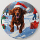 Irish Red Setter Running Snow with Christmas Hat 6 Cm Round Badge