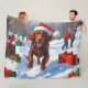 Irish Red Setter Running Snow with Christmas Hat Fleece Blanket