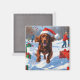 Irish Red Setter Running Snow with Christmas Hat Magnet