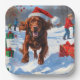 Irish Red Setter Running Snow with Christmas Hat Paper Plate