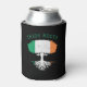 A can cooler that celebrates your Irish heritage featuring a large oak tree with roots silhouette textured with Ireland's flag.