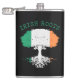 A flask that celebrates your Irish heritage featuring a large oak tree with roots silhouette textured with Ireland's flag.