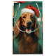 Colourful and joyful Christmas design with a Irish Setter wearing a Santa hat