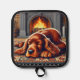 Irish Setter Puppy Sleeping by a Warm Fireplace Pot Holder