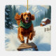 Irish Setter Sledding Adventure Christmas Painting Ceramic Ornament