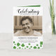 Irish theme folded funeral program in traditional irish white and green colours, with scattered shamrock clovers for decoration. On the cover, a photograph of your loved one along with their name, years of living and time and date of service. Inside you can write the obituary program and order of service. The back of the program is left for you to add acknowledgements to your friends and family.