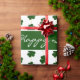 Irish Symbol of Good Luck Three Leaf Clovers Pattern with Faux Ribbon and Custom Text Happy St. Patrick, Glossy or Matte Gift Wrapping Paper, you can add name or text