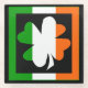 This colourful glass drink coaster features the green, orange, and white stripes of the flag of Ireland, which fill up a shamrock. The shamrock is framed in dramatic black and bordered by the Irish flag stripes. The perfect coaster for your Irish drink!