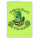 This Irish skull with shamrocks, leprechaun hat and IRISH TO THE BONE text is designed in green for St. Patrick's Day.