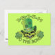 Green skull wearing a Leprechaun hat with shamrock accents is just in time for St. Patrick's day. Message reads " IRISH TO THE BONE".