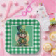 A Beautiful Green Gingham Plaid Square Paper Plate With Adorable Irish Gnome For St. Patrick's Day