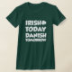 Irish Today Danish Tomorrow funny design on dark clothing perfect for a Danish man or woman on St. Patrick's Day, at an Irish bar, or at an Irish festival. You'll act like your Irish today, but tomorrow you'll still be Danish!