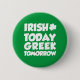 Irish Today Greek Tomorrow funny design. Perfect for someone Greekon St. Patricks Day, at an Irish bar, or at an Irish festival. You'll act like you're Irish today, but tomorrow you'll still be Greek!