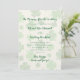 Irish wedding breakfast invitation designed with green clovers background. Begin the text with “the morning after the wedding” or your preferred text. The names of the newlywed couple can be listed as Mr. and Mrs. with title of event. A paragraph of printed green text holds the date, time and location of the breakfast, whether the day of, or the day after, the ceremony. Four leaf clovers decorate both sides of this paper shown in an upgrade, or change the paper type.