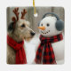 Irish Wolfhound Gazing at a Cute Snowman Ceramic Ornament